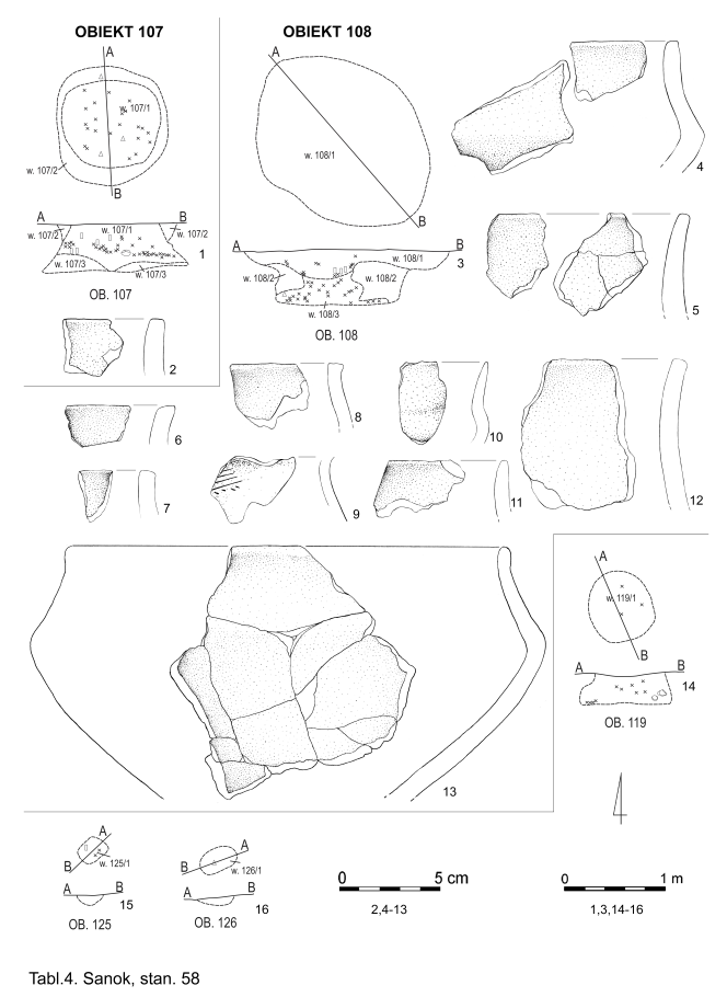 Sanok, stan. 58. Przykłady płytkich jam gospodarczych – 100 (1, 2) i 110 (3, 4)